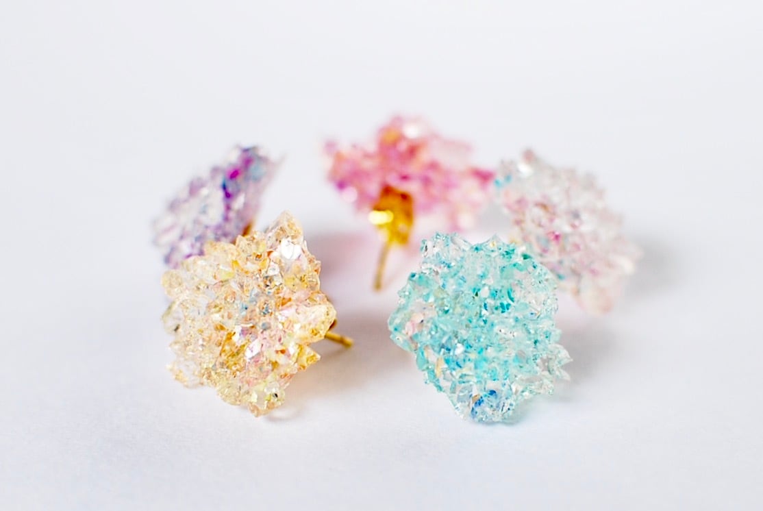 クールな鉱物を可愛らしい配色で、氷のように仕立てたアクセサリーです。